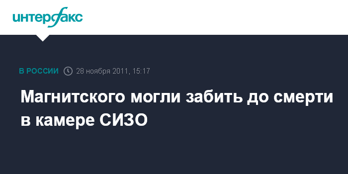 Москва. 28 ноября. INTERFAX.RU - Члены президентского совета по правам человека утверждают, что юрист фонда Hermitage Capital Сергей Магнитский мог скончаться в результате избиения резиновыми дубинками в СИЗО "Матросская тишина", и настаивают на расследовании фактов, свидетельствующих об этом.