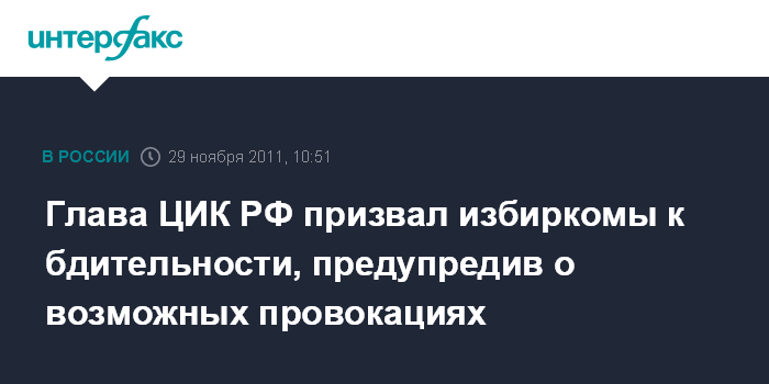 Москва. 29 ноября. INTERFAX.RU - Председатель ЦИК РФ Владимир Чуров не исключает, что в ходе голосования на выборах в Госдуму произойдут различные провокации.