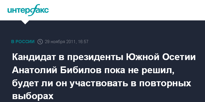 Цхинвал. 29 ноября. INTERFAX.RU - Кандидат в президенты Южной Осетии Анатолий Бибилов заявил "Интерфаксу", что считает справедливым решение Верховного суда республики, признавшего недействительными итоги президентских выборов.