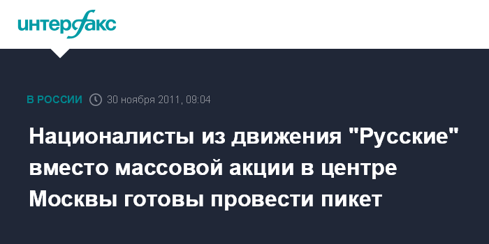 Националисты из движения "Русские" вместо массовой акции в центре Москвы готовы провести пикет