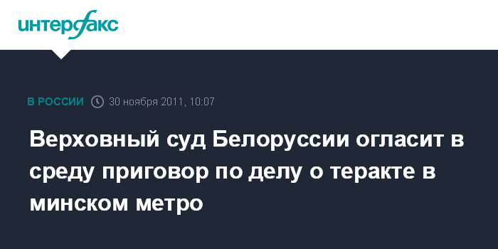 Верховный суд Белоруссии огласит в среду приговор по делу о теракте в минском метро