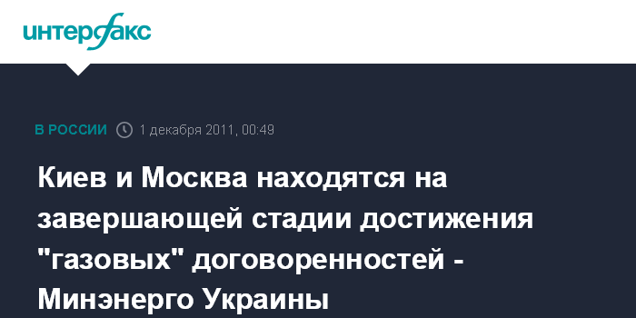 Киев и Москва находятся на завершающей стадии достижения "газовых" договоренностей - Минэнерго Украины