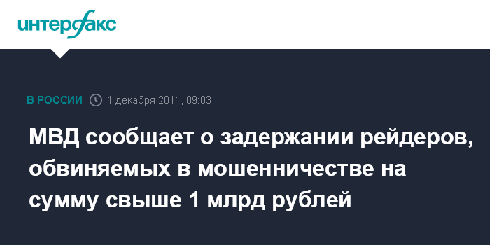 МВД сообщает о задержании рейдеров, обвиняемых в мошенничестве на сумму свыше 1 млрд рублей