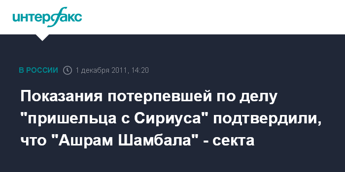 Показания потерпевшей по делу "пришельца с Сириуса" подтвердили, что "Ашрам Шамбала" - секта