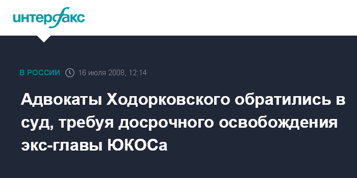Москва. 16 июля. INTERFAX.RU - Адвокаты экс-главы НК "ЮКОС" Михаила Ходорковского передали в Ингодинский районный суд Читы ходатайство о его условно-досрочном освобождении (УДО).