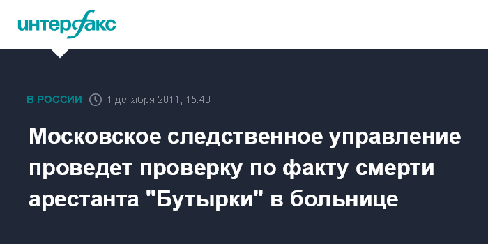 Московское следственное управление проведет проверку по факту смерти арестанта "Бутырки" в больнице