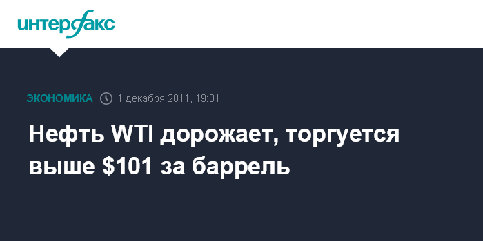 Нефть WTI дорожает, торгуется выше $101 за баррель
