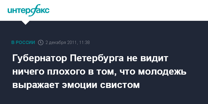 Губернатор Петербурга не видит ничего плохого в том, что молодежь выражает эмоции свистом