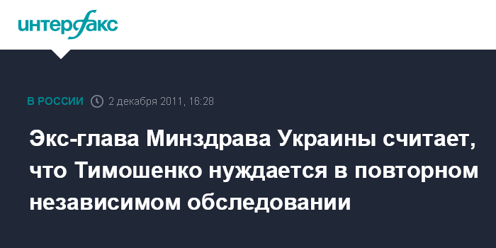 Экс-глава Минздрава Украины считает, что Тимошенко нуждается в повторном независимом обследовании