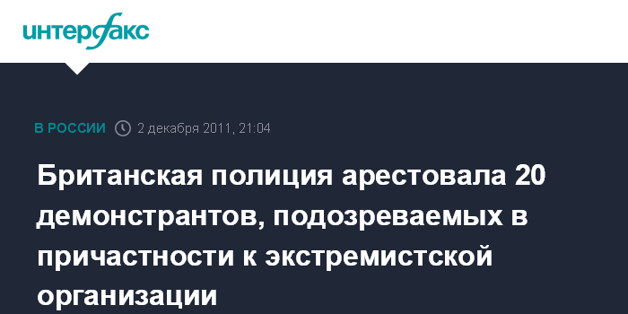 Британская полиция арестовала 20 демонстрантов, подозреваемых в причастности к экстремистской организации
