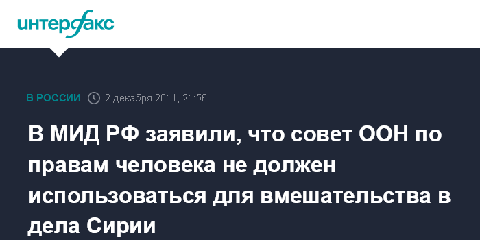 В МИД РФ заявили, что совет ООН по правам человека не должен использоваться для вмешательства в дела Сирии