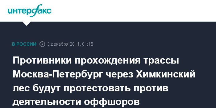Противники прохождения трассы Москва-Петербург через Химкинский лес будут протестовать против деятельности оффшоров