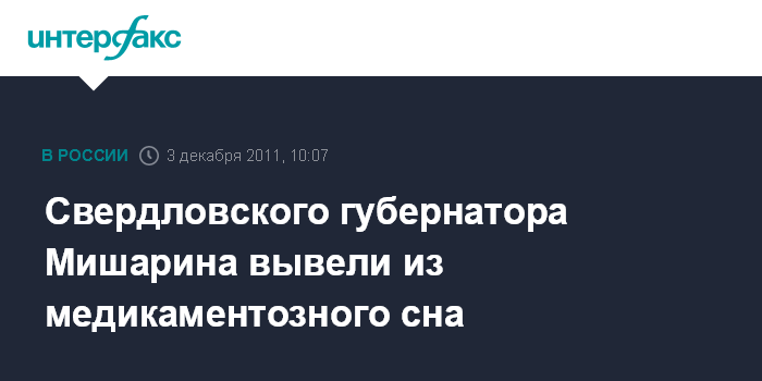 Свердловского губернатора Мишарина вывели из медикаментозного сна