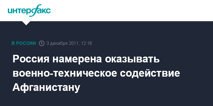 Россия намерена оказывать военно-техническое содействие Афганистану