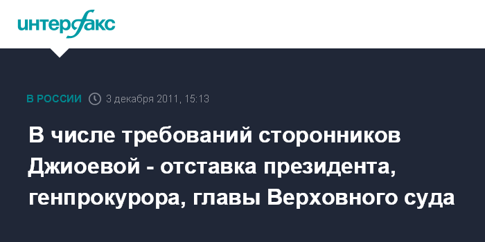 В числе требований сторонников Джиоевой - отставка президента, генпрокурора, главы Верховного суда