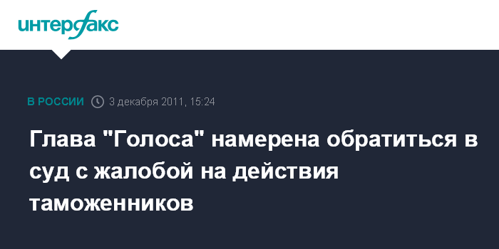Глава "Голоса" намерена обратиться в суд с жалобой на действия таможенников