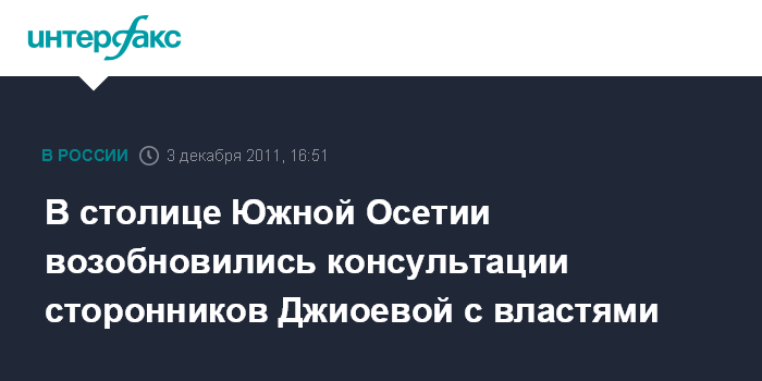 Цхинвал. 3 декабря. INTERFAX.RU - В Цхинвале начались консультации сторонников экс-кандидата в президенты Южной Осетии Аллы Джиоевой с властями, передает корреспондент "Интерфакса".