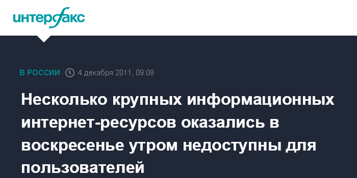 Несколько крупных информационных интернет-ресурсов оказались в воскресенье утром недоступны для пользователей
