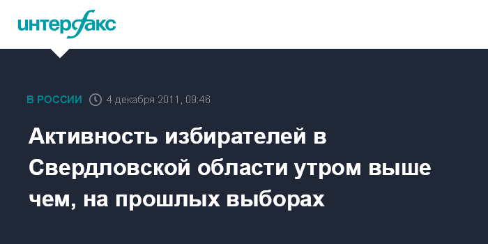 Екатеринбург. 4 декабря. INTERFAX.RU - Явка избирателей в Свердловской области, по данным на 10:00 по местному времени, составила 3,58%.