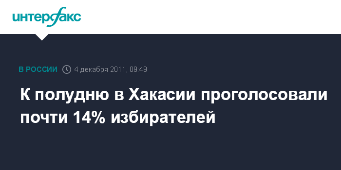 Абакан. 4 декабря. INTERFAX.RU - Явка избирателей в Хакасии на выборах в Госдуму за четыре часа работы избирательных участков составила 13,95%, сообщили в воскресенье агентству "Интерфакс-Сибирь" в региональном избиркоме.