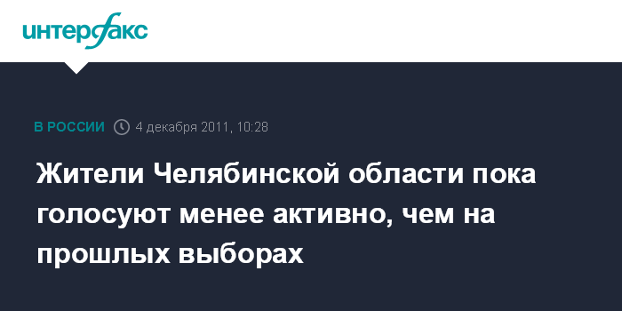 Челябинск. 4 декабря. INTERFAX.RU - В Челябинской области за первые два часа голосования явка на выборах депутатов Государственной Думы составила практически 5%, что ниже явки на прошлых выборах, сообщается на сайте облизбиркома.