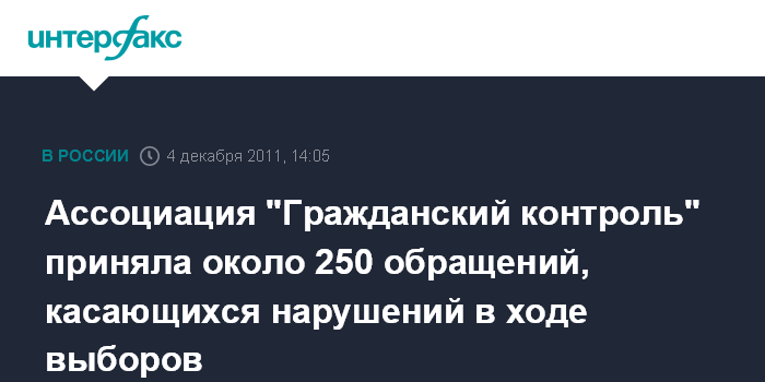 Москва. 4 декабря. INTERFAX.RU - В ассоциацию "Гражданский контроль" поступило 243 сообщения о возможных нарушениях на выборах в Госдуму, однако серьезных инцидентов в ходе голосования пока не зафиксировано.