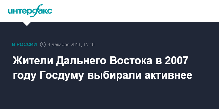 В избирательных комиссиях Приморья, Камчатки, Колымы, Хабаровского края, Еврейской АО, Амурской области, Сахалине, и Якутии на этих выборах депутатов Госдумы отмечают явку ниже той, которая была зафиксирована в 2007 году. Причем только на Чукотке, Камчатке и Якутии на участки пришло более 50% избирателей.