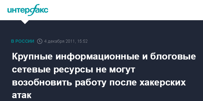 Москва. 4 декабря. INTERFAX.RU – В воскресенье многие сетевые новостные и блоговые ресурсы оказались недоступны для пользователей.