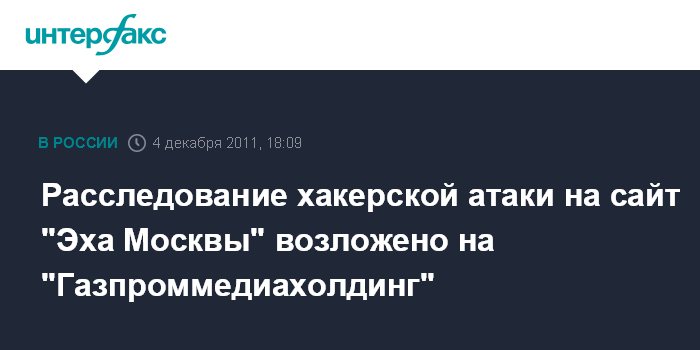 Расследование хакерской атаки на сайт "Эха Москвы" возложено на "Газпроммедиахолдинг"
