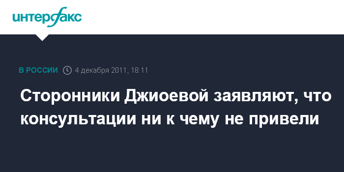 Один из сторонников экс-кандидата в президенты Южной Осетии Аллы Джиоевой Алан Плиев сообщил "Интерфаксу", что консультации ни к чему не привели, никаких определенных решений не достигнуто. "Теперь все стороны будут ждать решения Верховного суда", - сказал А.Плиев.