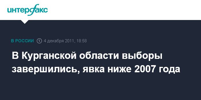 Курган. 4 декабря. INTERFAX.RU - Явка избирателей в Курганской области на выборах в Госдуму РФ за полчаса до закрытия избирательных участков в 19:30 (17:30 мск) составила 54,77%, сообщил агентству "Интерфакс-Урал" представитель регионально избирательной комиссии.