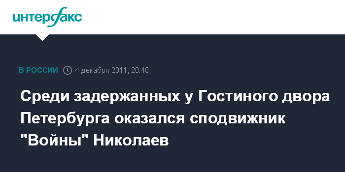 Среди задержанных у Гостиного двора Петербурга оказался сподвижник "Войны" Николаев