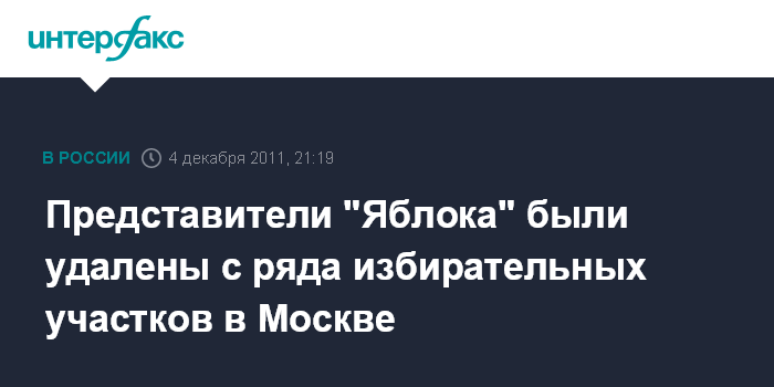 Москва. 4 декабря. INTERFAX.RU - Председатель партии "Яблоко" Сергей Митрохин заявил, что представители этой партии были удалены с ряда избирательных участков в Москве.
