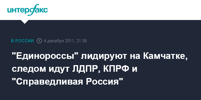 Москва. 4 декабря. INTERFAX,RU - По данным 71,9% протоколов, обработанных на Камчатке, за "Единую Россию" на выборах в Госдуму отдано 46,64% голосов.