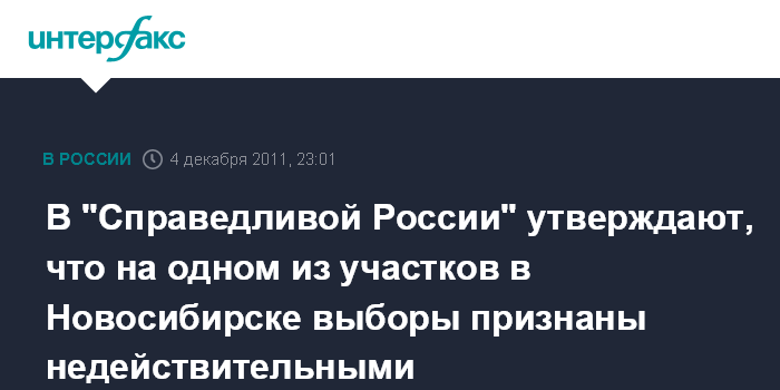 Москва. 4 декабря. INTERFAX.RU - На одном из участков в Новосибирске избирательная комиссия признала выборы недействительными, сообщает депутат-справедливоросс Илья Пономарев.