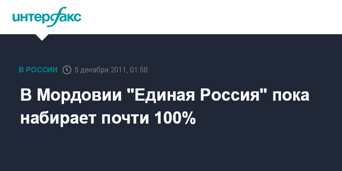 Саранск. 5 декабря. INTERFAX.RU - В Мордовии на выборах в Государственную думу РФ по итогам обработки около 10% бюллетеней "Единая Россия" лидирует с результатом 97,51%.