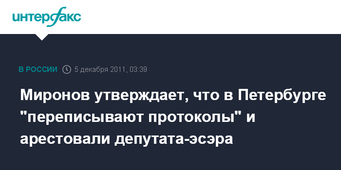Миронов утверждает, что в Петербурге "переписывают протоколы" и арестовали депутата-эсэра