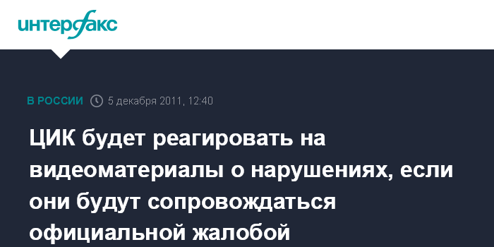 Так он ответил на вопрос одного из журналистов о том, будет ли ЦИК заниматься видеороликами, размещенными в Интернете, на которых якобы размещены кадры, свидетельствующие о вбросах бюллетеней и других нарушениях.
