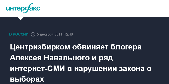 Москва. 5 декабря. INTERFAX.RU - ЦИК РФ собирается привлечь к ответственности ряд сетевых СМИ, а также блогера Алексея Навального за обнародование данных об "итогах" парламентского голосования до окончания выборов.