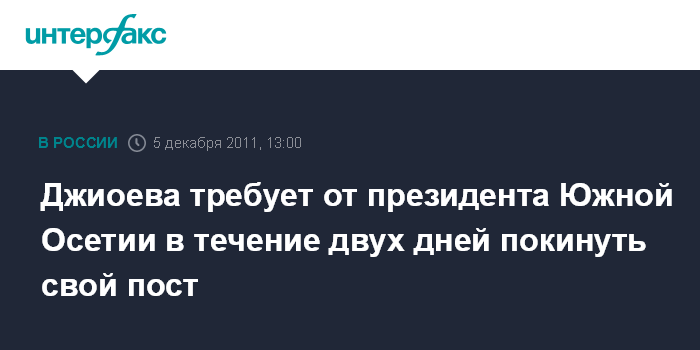 Джиоева требует от президента Южной Осетии в течение двух дней покинуть свой пост