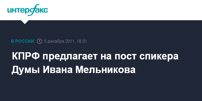 Москва. 5 декабря. INTERFAX.RU - Фракция КПРФ в Госдуме намерена предложить на пост спикера нижней палаты Ивана Мельникова, который сейчас является заместителем председателя Госдумы.