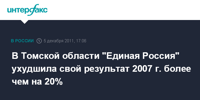 В Томской области "Единая Россия" ухудшила свой результат 2007 г. более чем на 20%