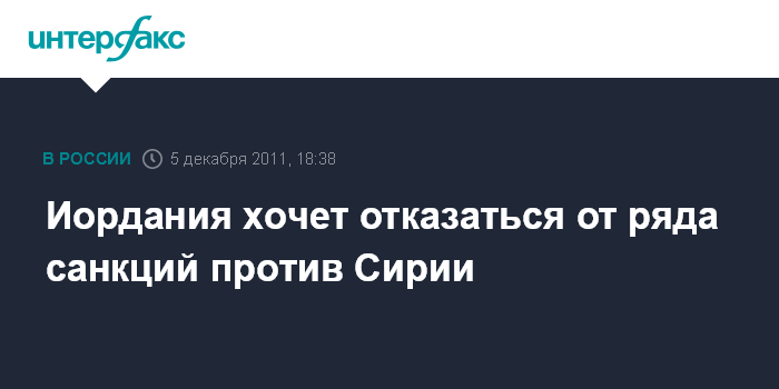 Каир. 5 декабря. INTERFAX.RU - Власти Иордании не хотят применять ряд санкций, введенных Лигой арабских государств (ЛАГ) против Сирии, поскольку это негативно скажется на экономике страны, сообщили в понедельник в иорданском министерстве иностранных дел.