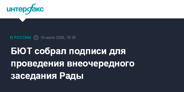 Москва. 16 июля. INTERFAX.RU - Блок Юлии Тимошенко собрал подписи, необходимые для внеочередного заседания парламента, однако хочет добиться компромисса поэтому вопросу с другими фракциями парламента.