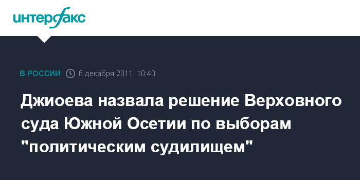 Цхинвали. 6 декабря. INTERFAX.RU - Экс-кандидат в президенты Южной Осетии Алла Джиоева считает решение Верховного суда республики об отмене выборов президента 27 ноября незаконным.