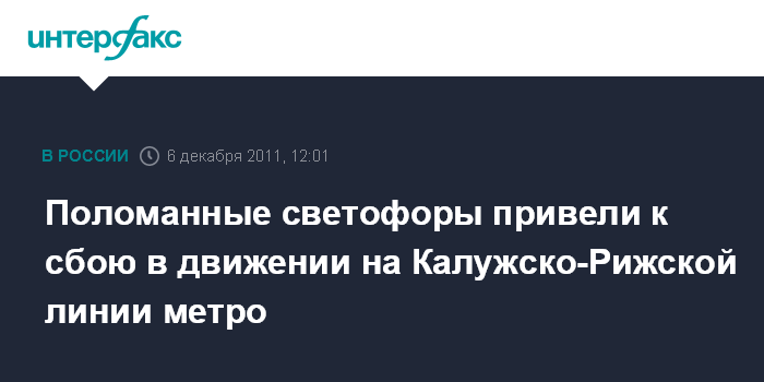 Москва. 6 декабря. INTERFAX.RU - Неисправные светофоры осложнили движение поездов во вторник утром на Калужско-Рижской линии столичного метрополитена.