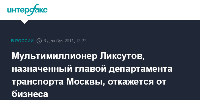 Мультимиллионер Ликсутов, назначенный главой департамента транспорта Москвы, откажется от бизнеса