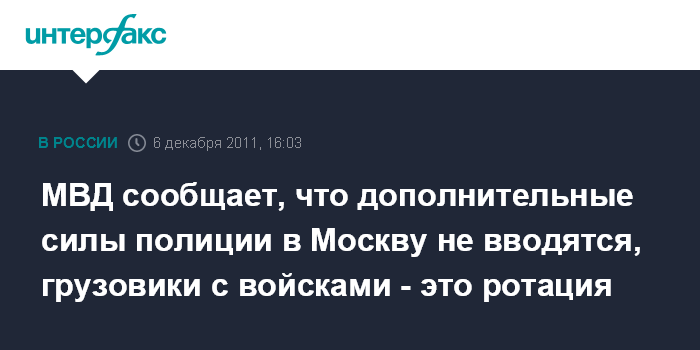 МВД сообщает, что дополнительные силы полиции в Москву не вводятся, грузовики с войсками - это ротация