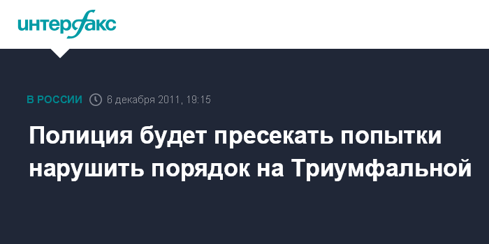 Москва. 6 декабря. INTERFAX.RU - Московская полиция заявляет о готовности пресечь попытки нарушить общественный порядок или перекрыть автомобильное движение в районе Триумфальной площади столицы.