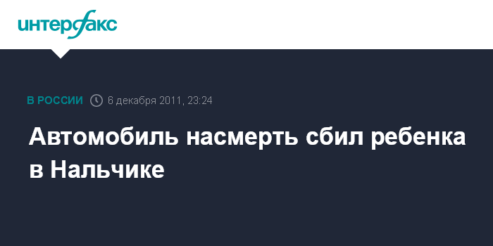 Нальчик. 6 декабря. INTERFAX.RU - В Нальчике расследуются обстоятельства гибели ребенка, сбитого автомобилем на проезжей части вне пешеходного перехода, сообщили во вторник агентству "Интерфакс-Юг" в пресс-службе Управления ГИБДД МВД по КБР.